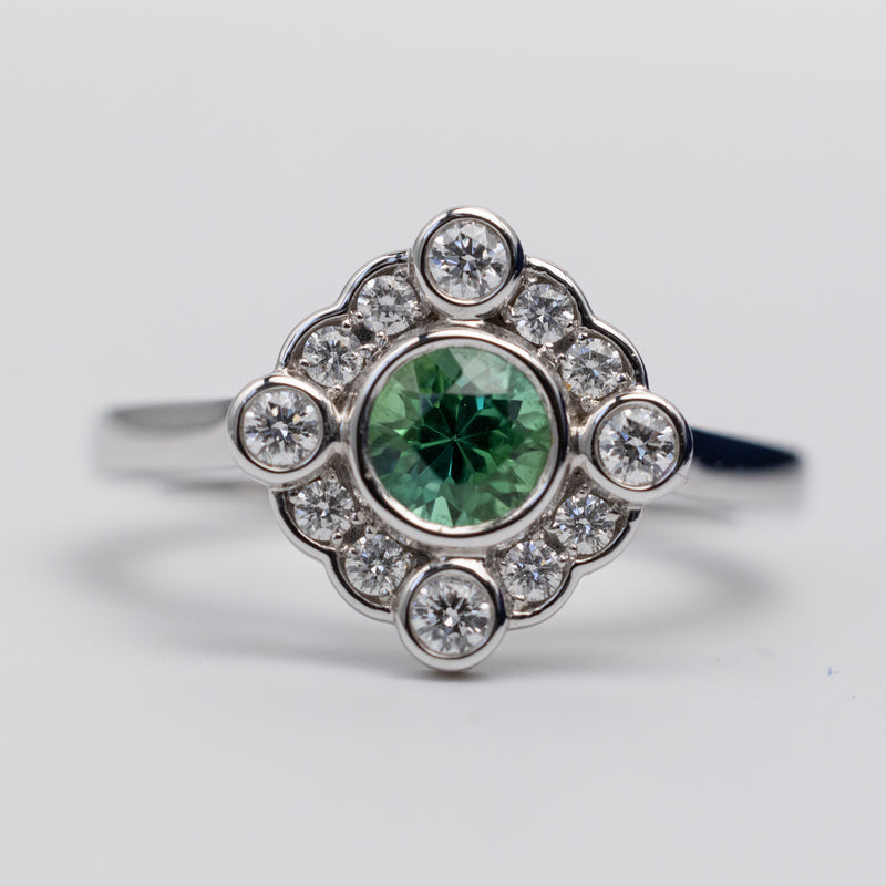 18K White Gold Mint Tourmaline And Diamond Ring