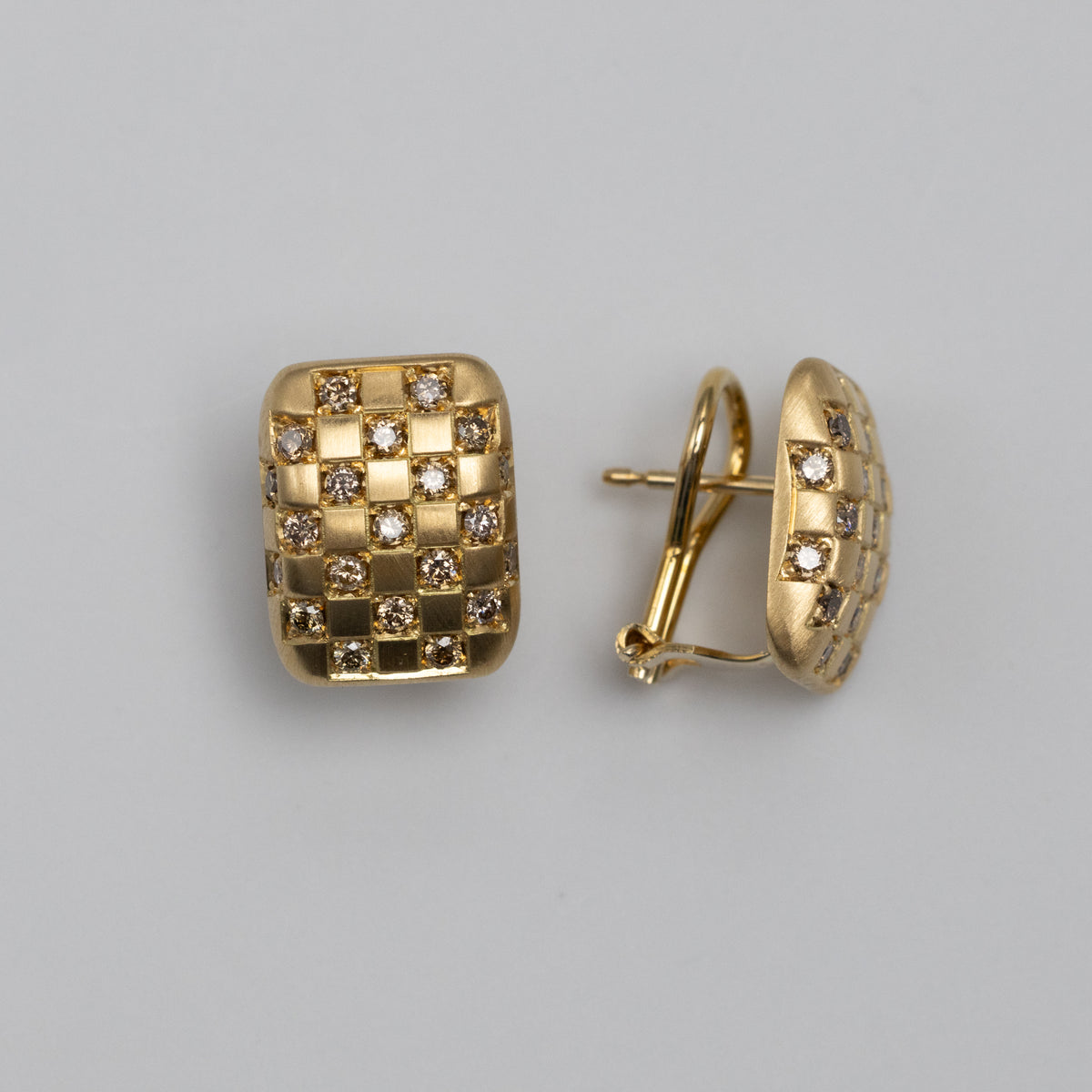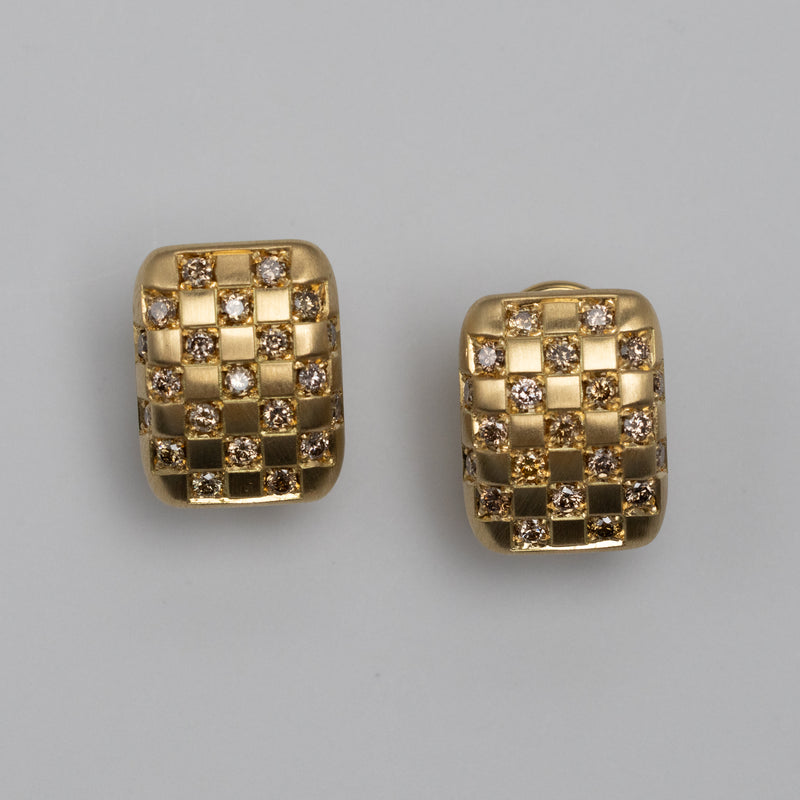 Cognac Diamond Gold Clip-On Earrings