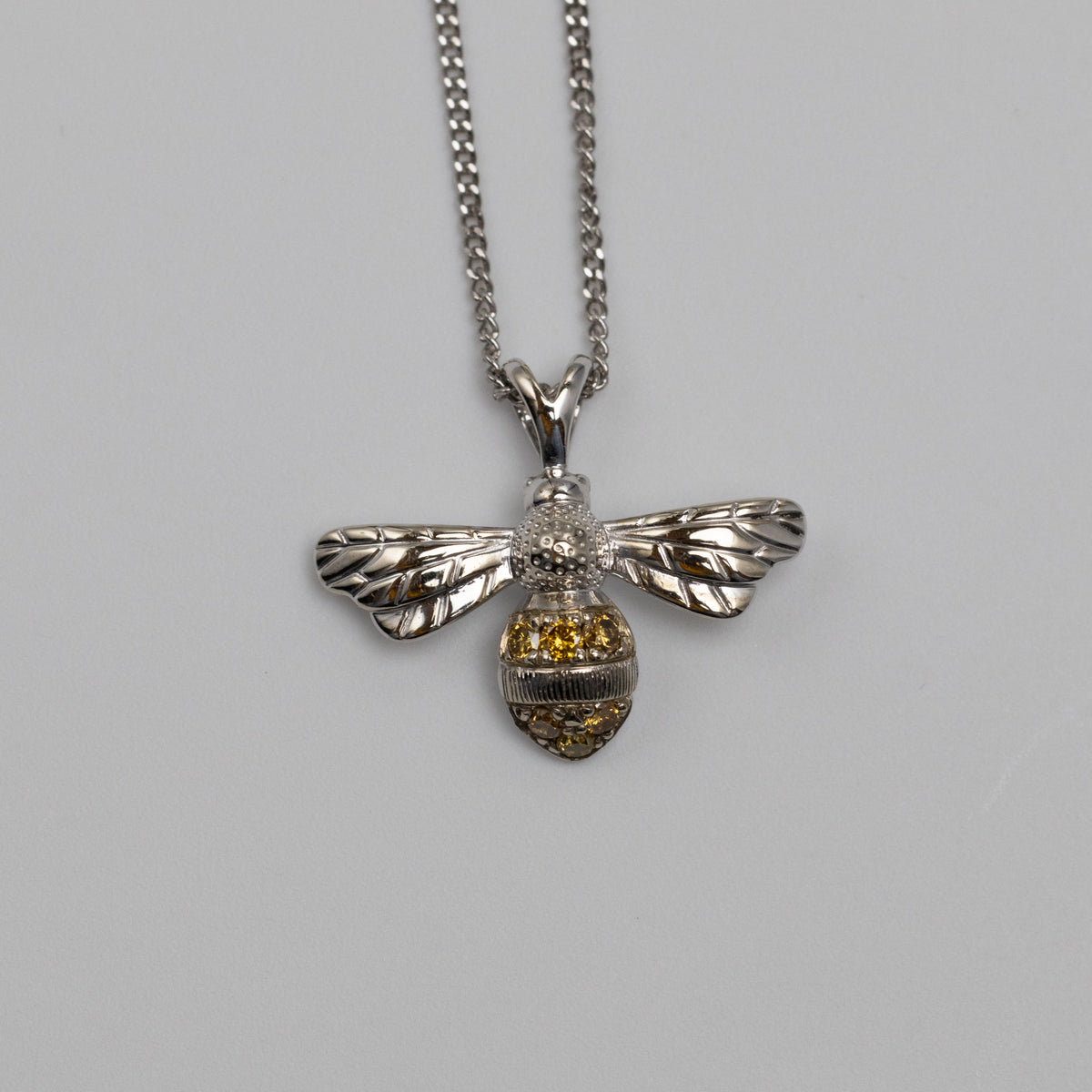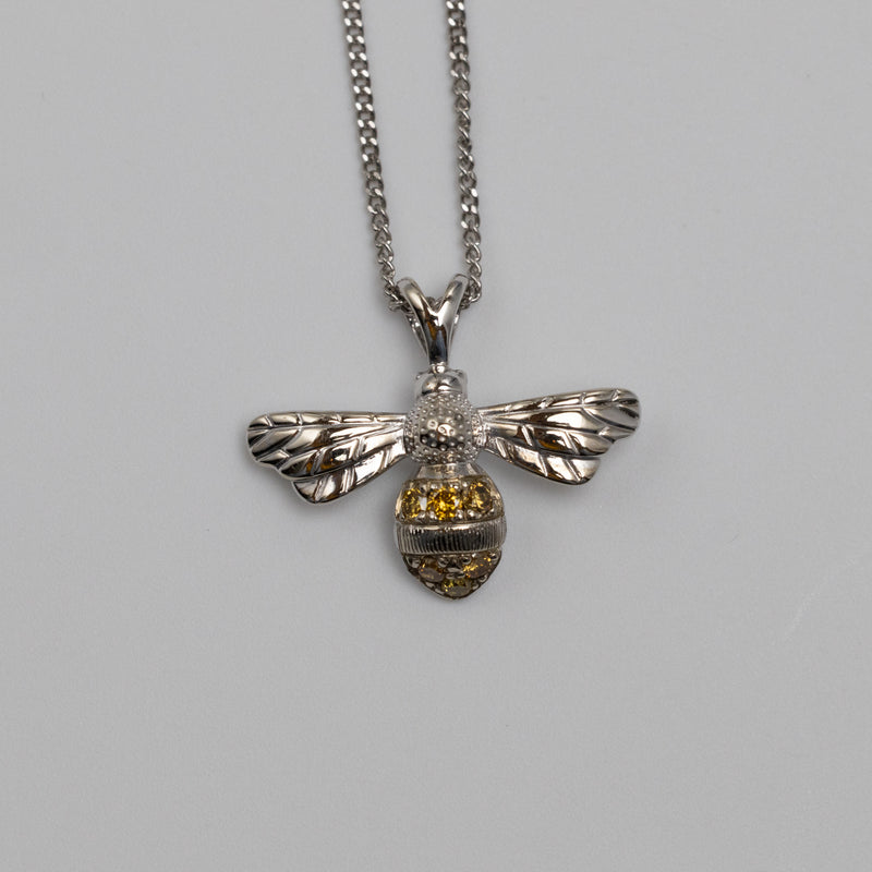9K White Gold Sapphire Bee Pendant